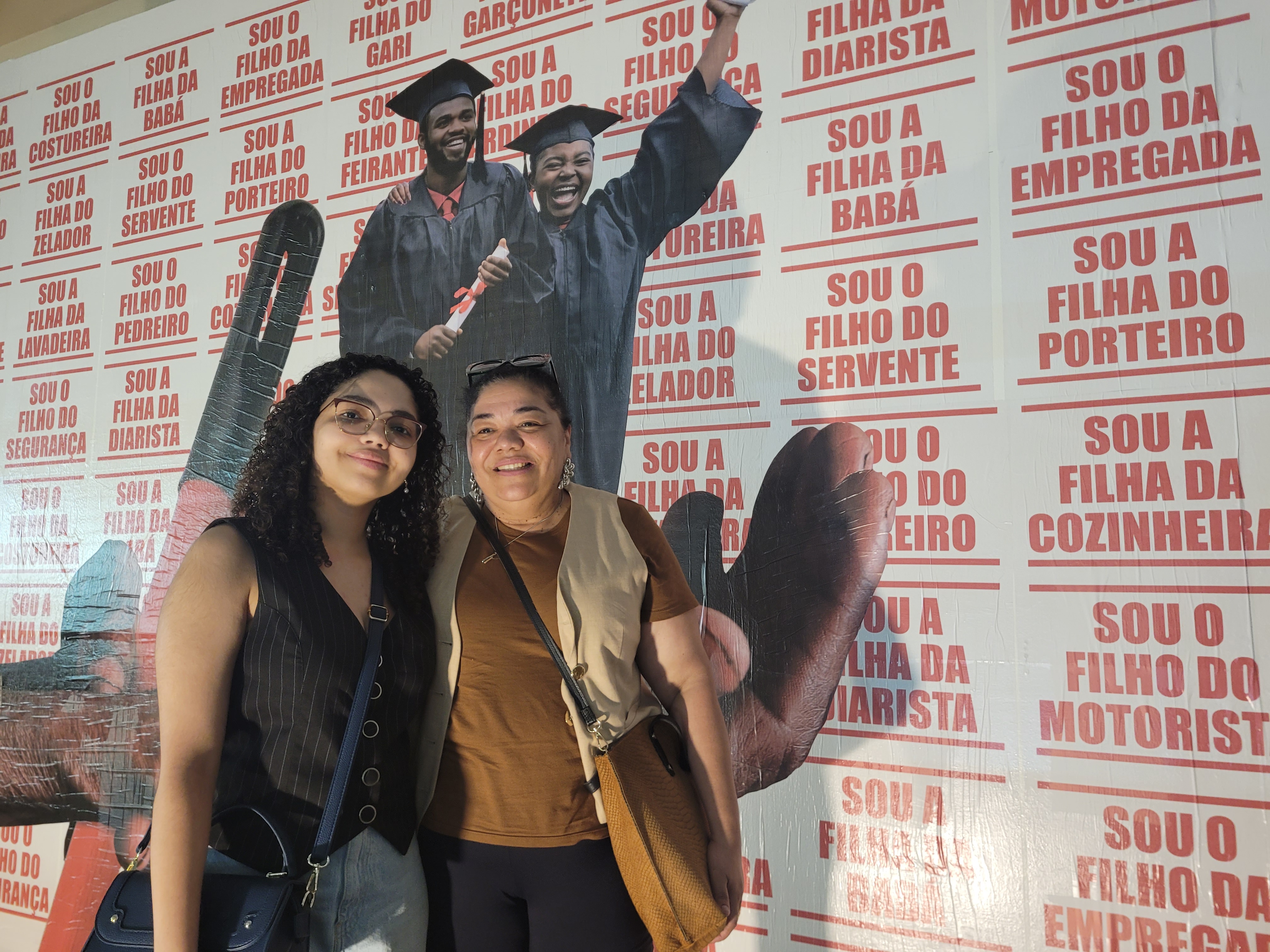 Eulalia Maria, autônoma, passeava com a filha. Sensibilizada com o mural, enxergou na arte o contexto vivido por ela e tantos outros brasileiros. “Isso aqui é uma realidade, não para todos, mas para algumas pessoas que, com muita luta, com muita garra, conseguem. Aqui tá ‘sou a filha do gari’, ‘sou o filho do servente’, ‘sou o filho da garçonete’. Quando uma pessoa quer, ela consegue, mas é com muita luta, porque a discriminação é grande”, refletiu.